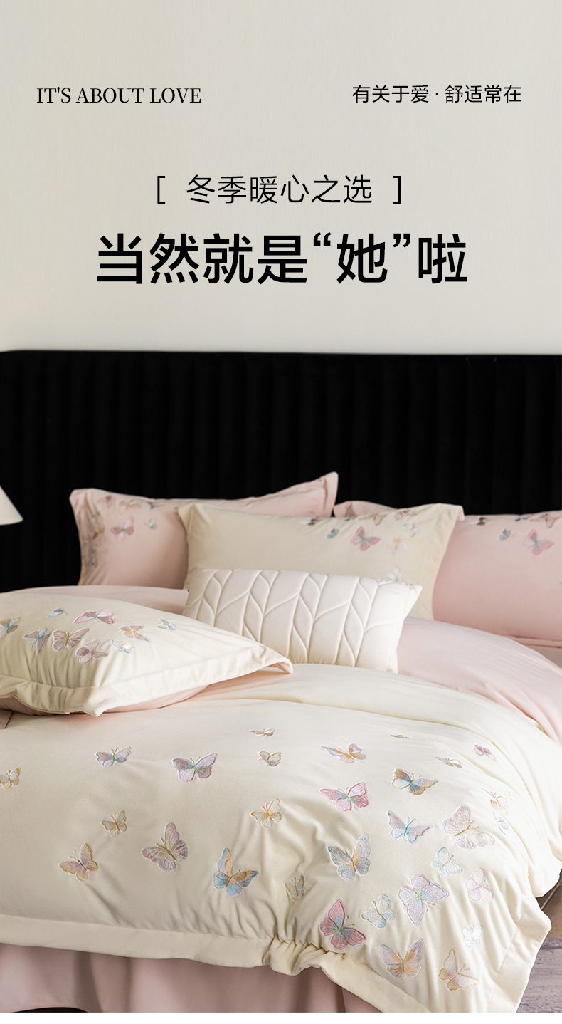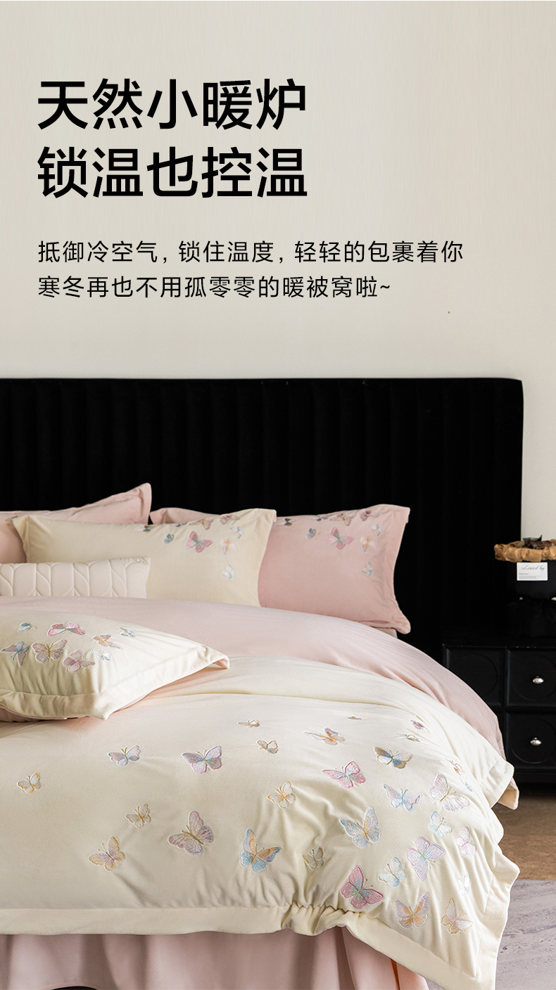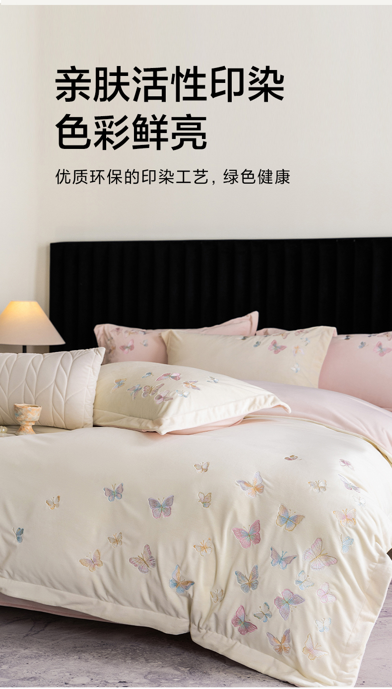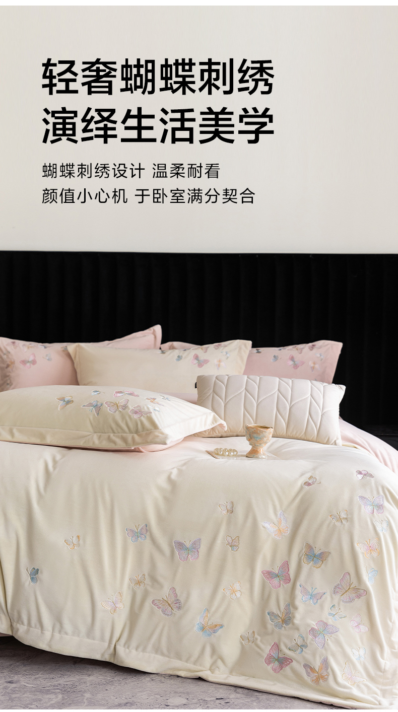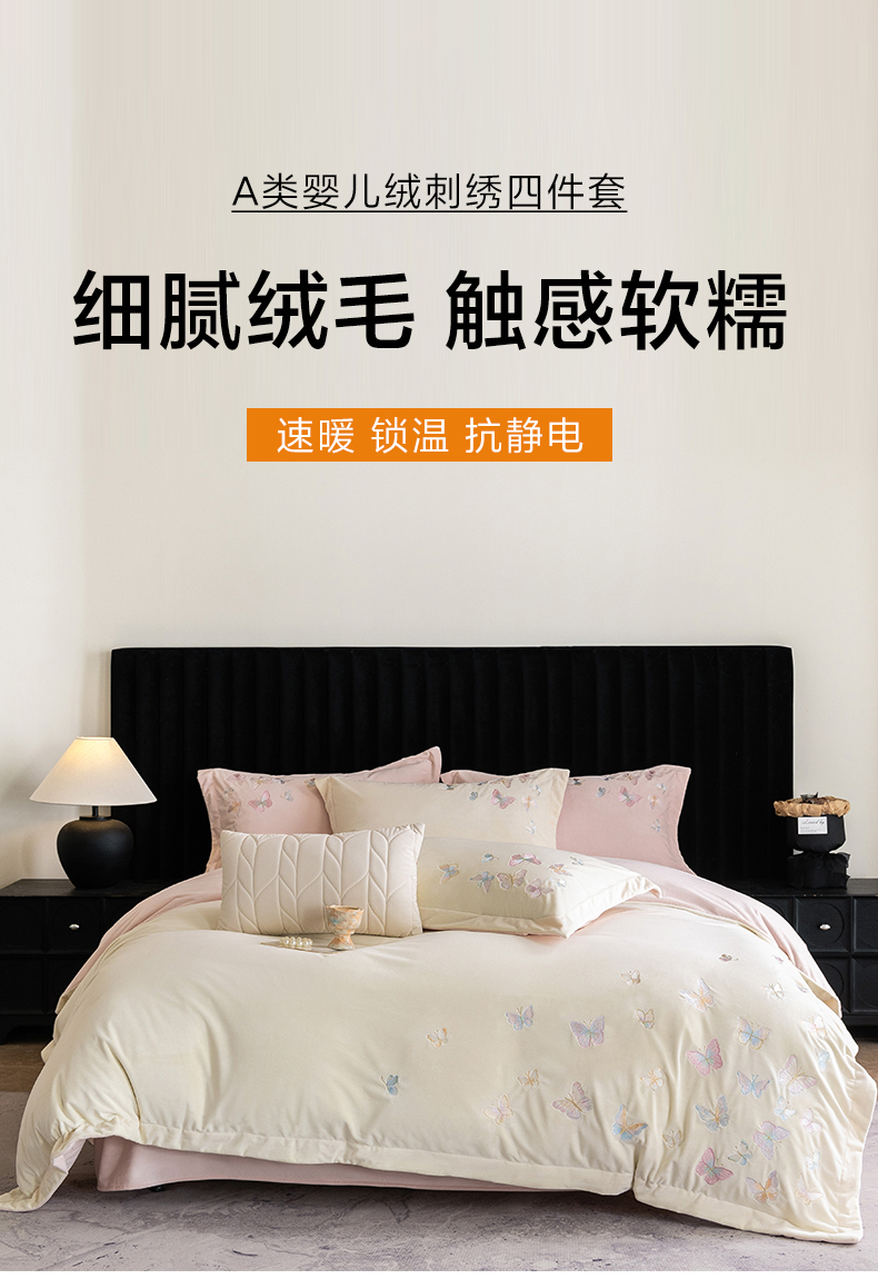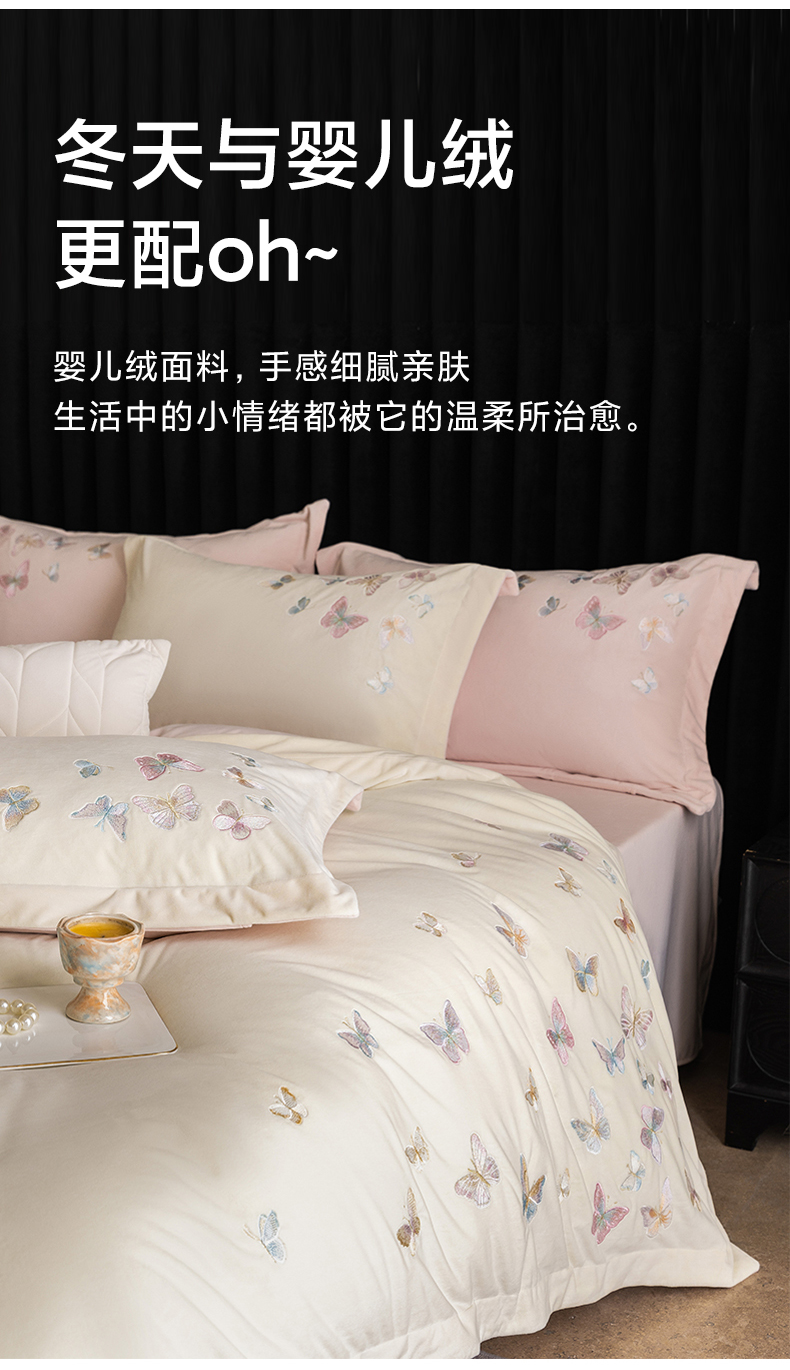 - - 2025新款A类婴儿绒宝宝绒牛奶绒纯色蝴蝶刺绣绣花四件套-福蝶翩翩
