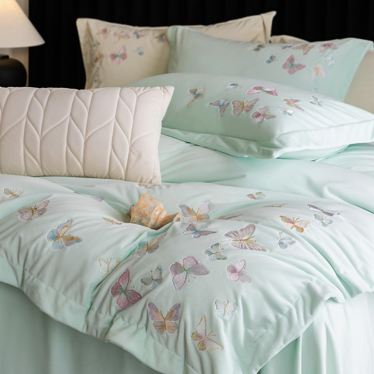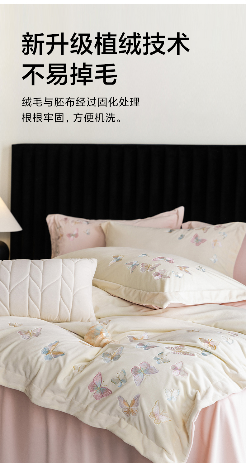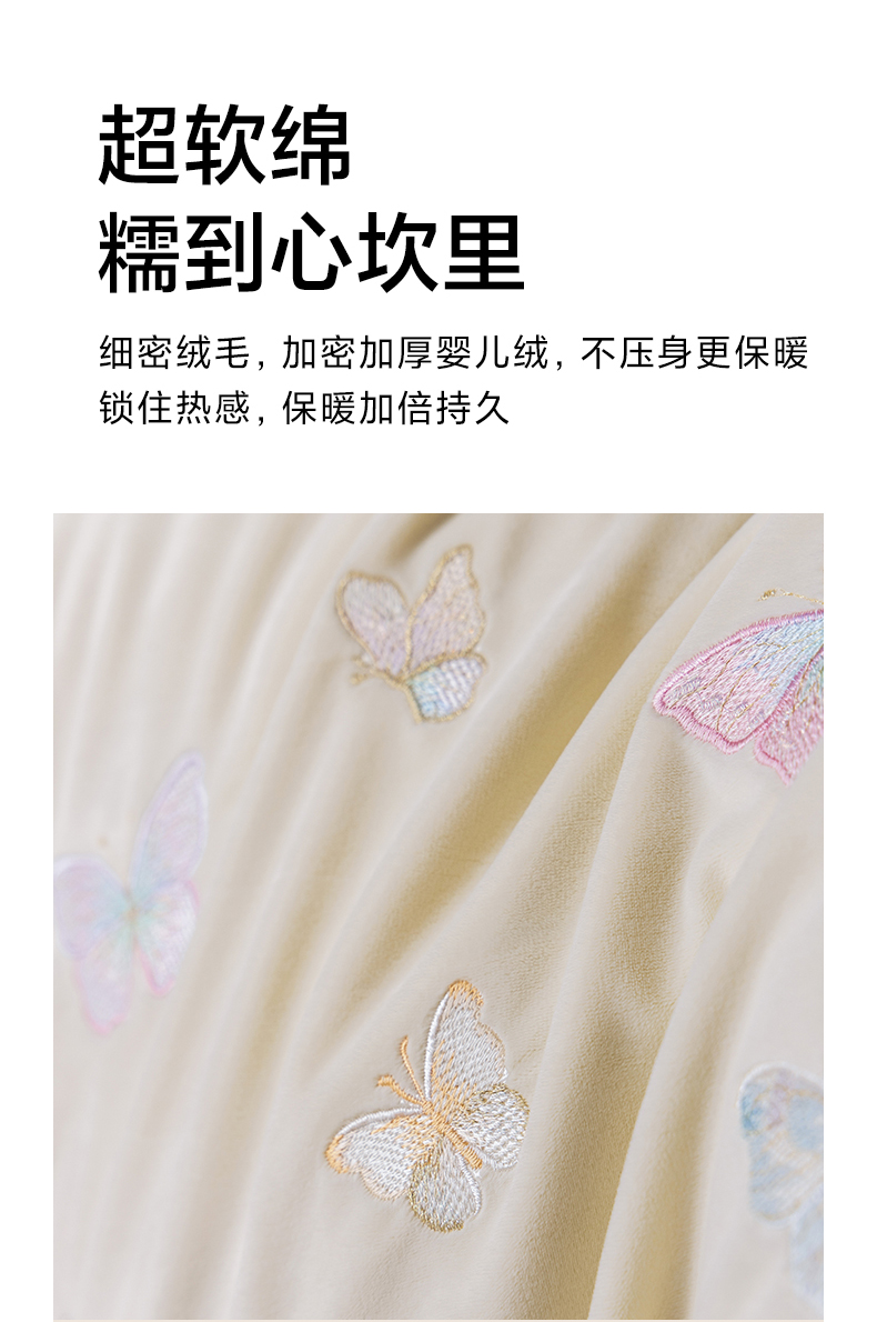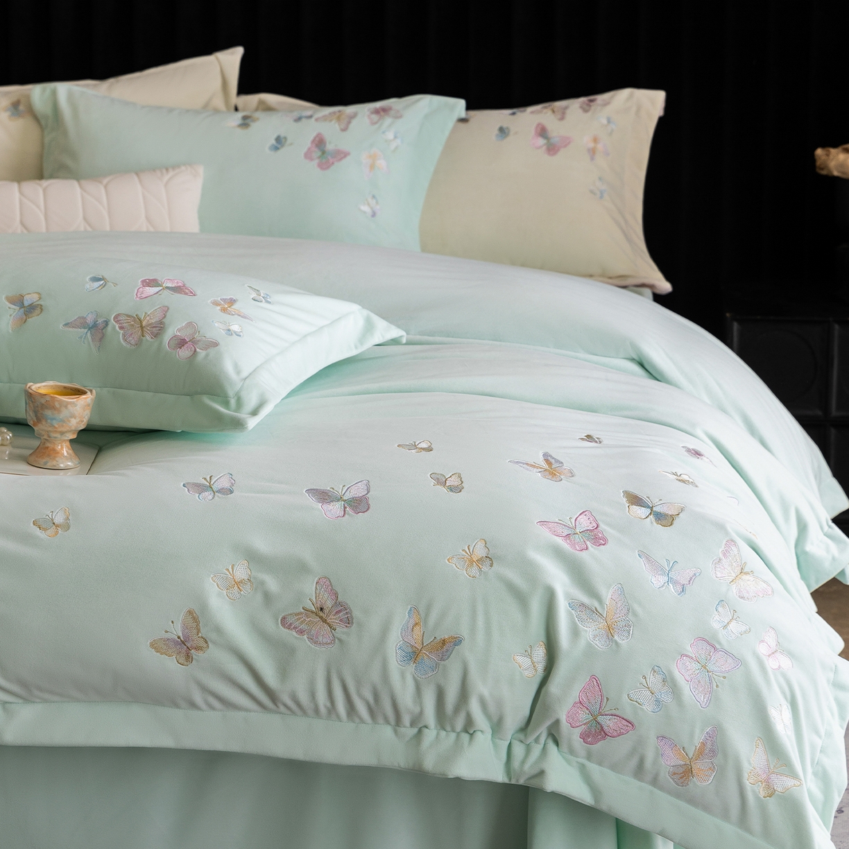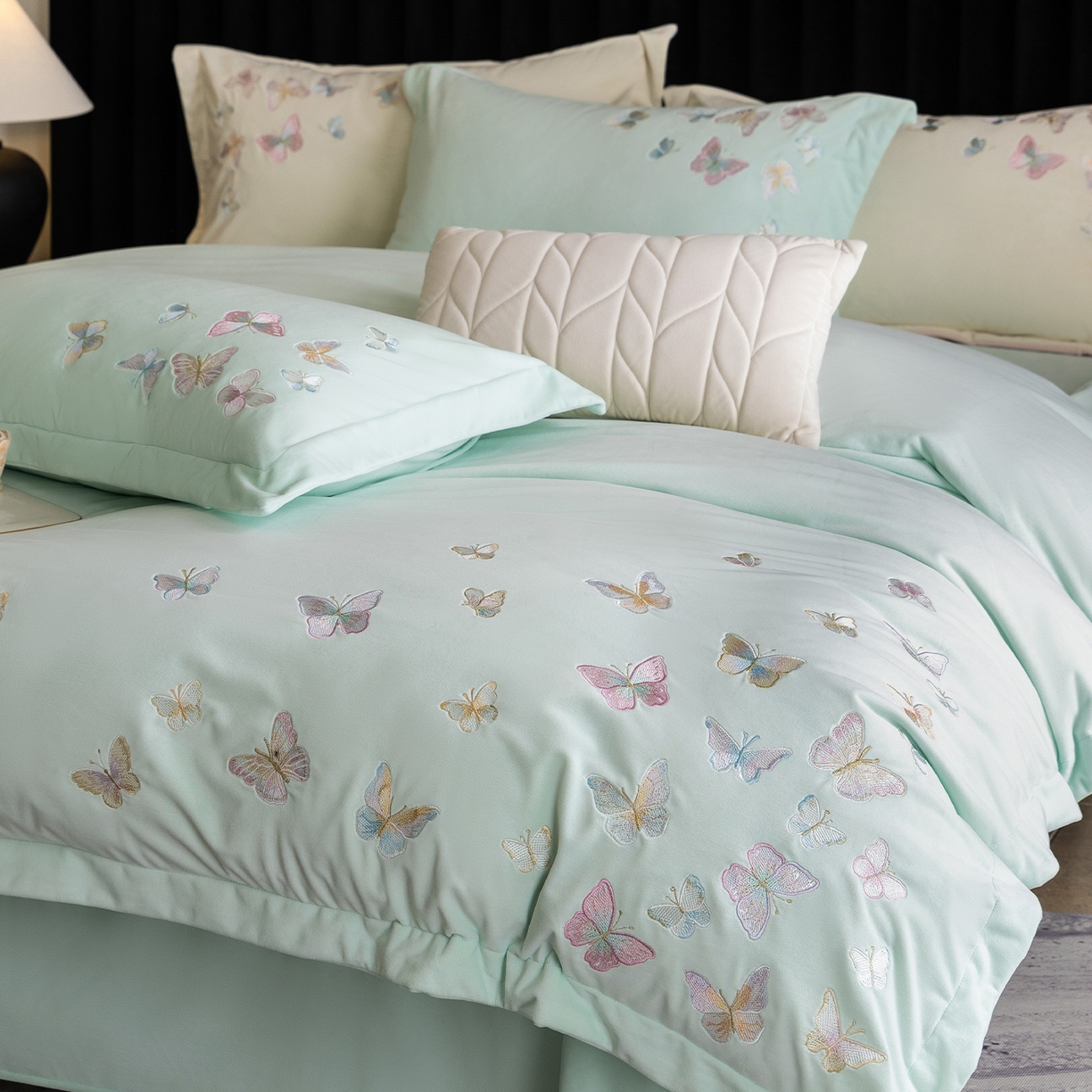 - - 2025新款A类婴儿绒宝宝绒牛奶绒纯色蝴蝶刺绣绣花四件套-福蝶翩翩