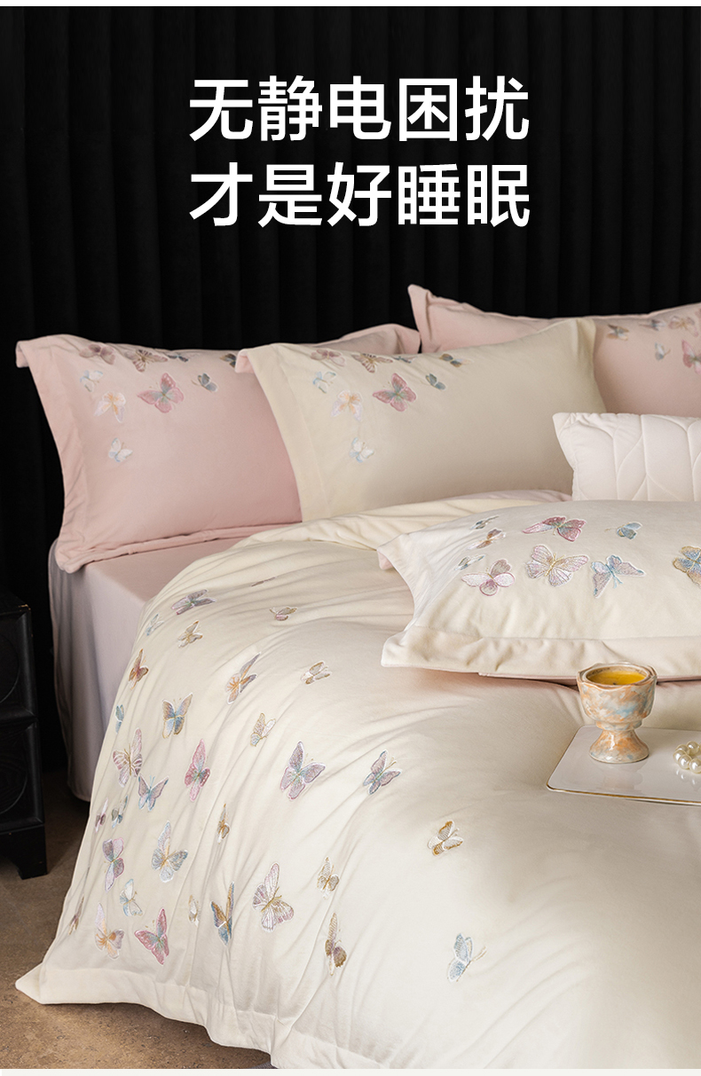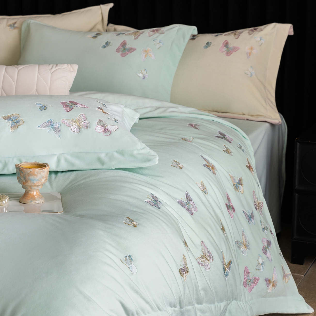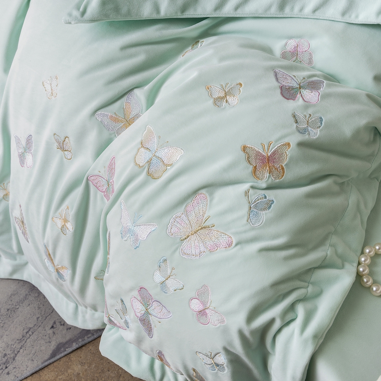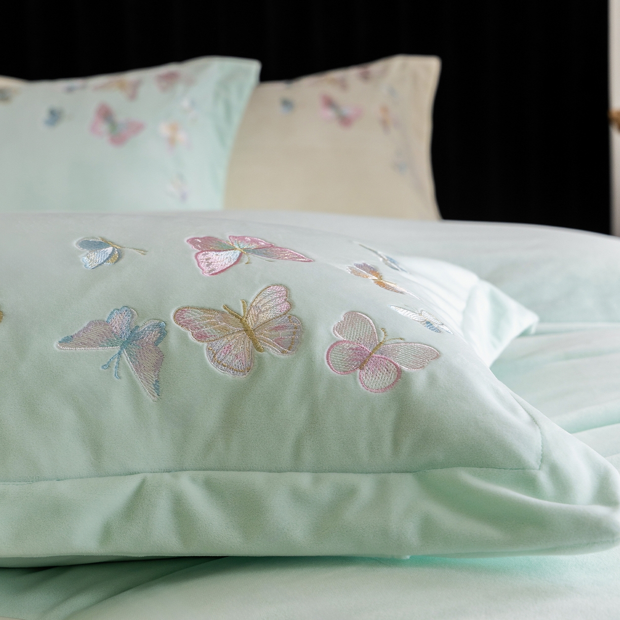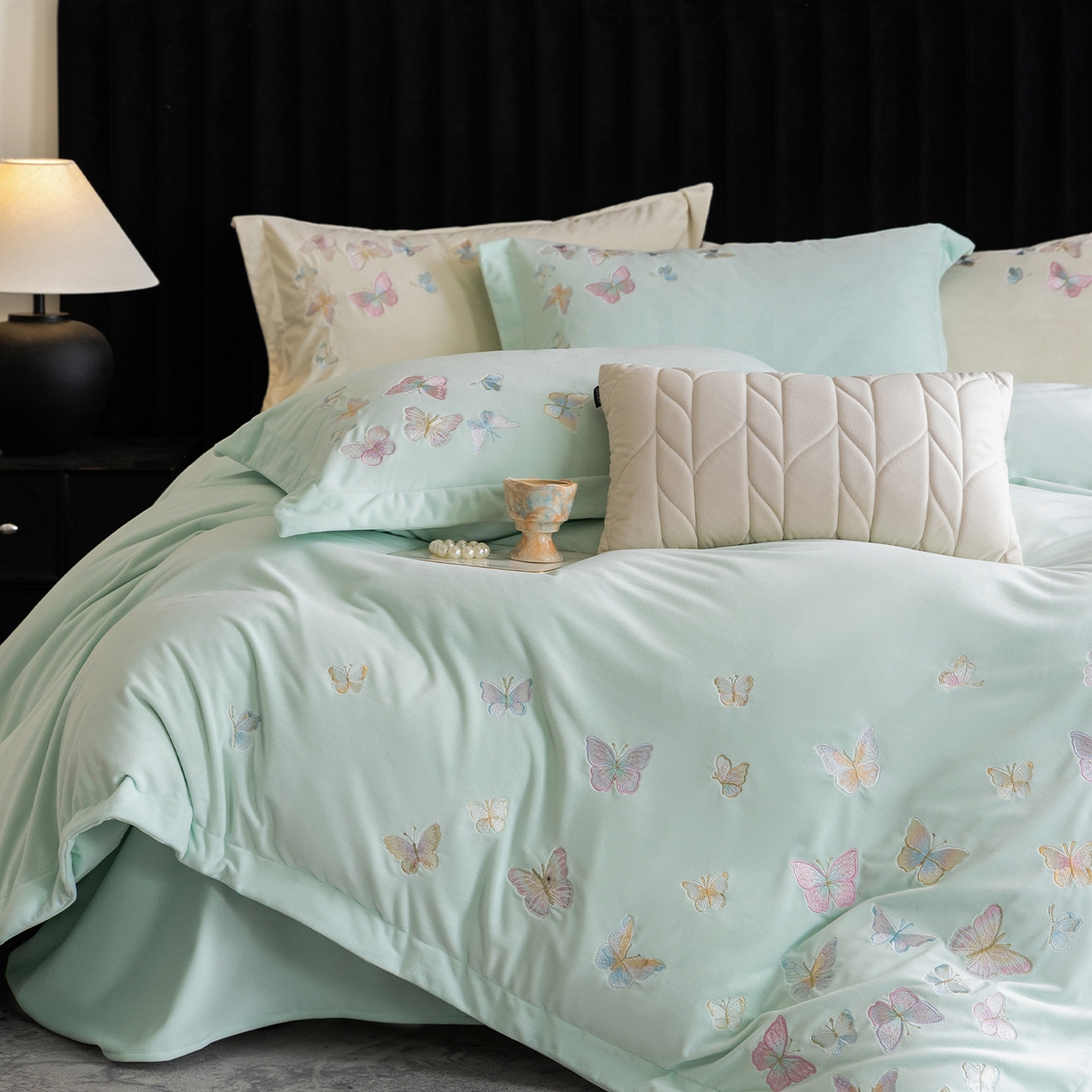 - - 2025新款A类婴儿绒宝宝绒牛奶绒纯色蝴蝶刺绣绣花四件套-福蝶翩翩