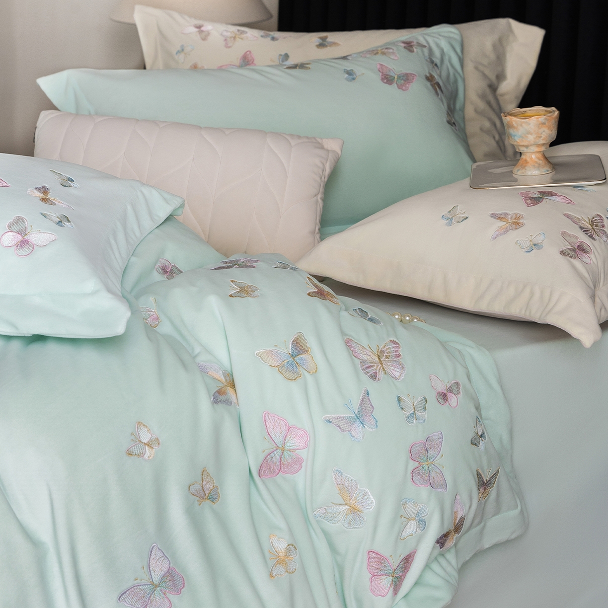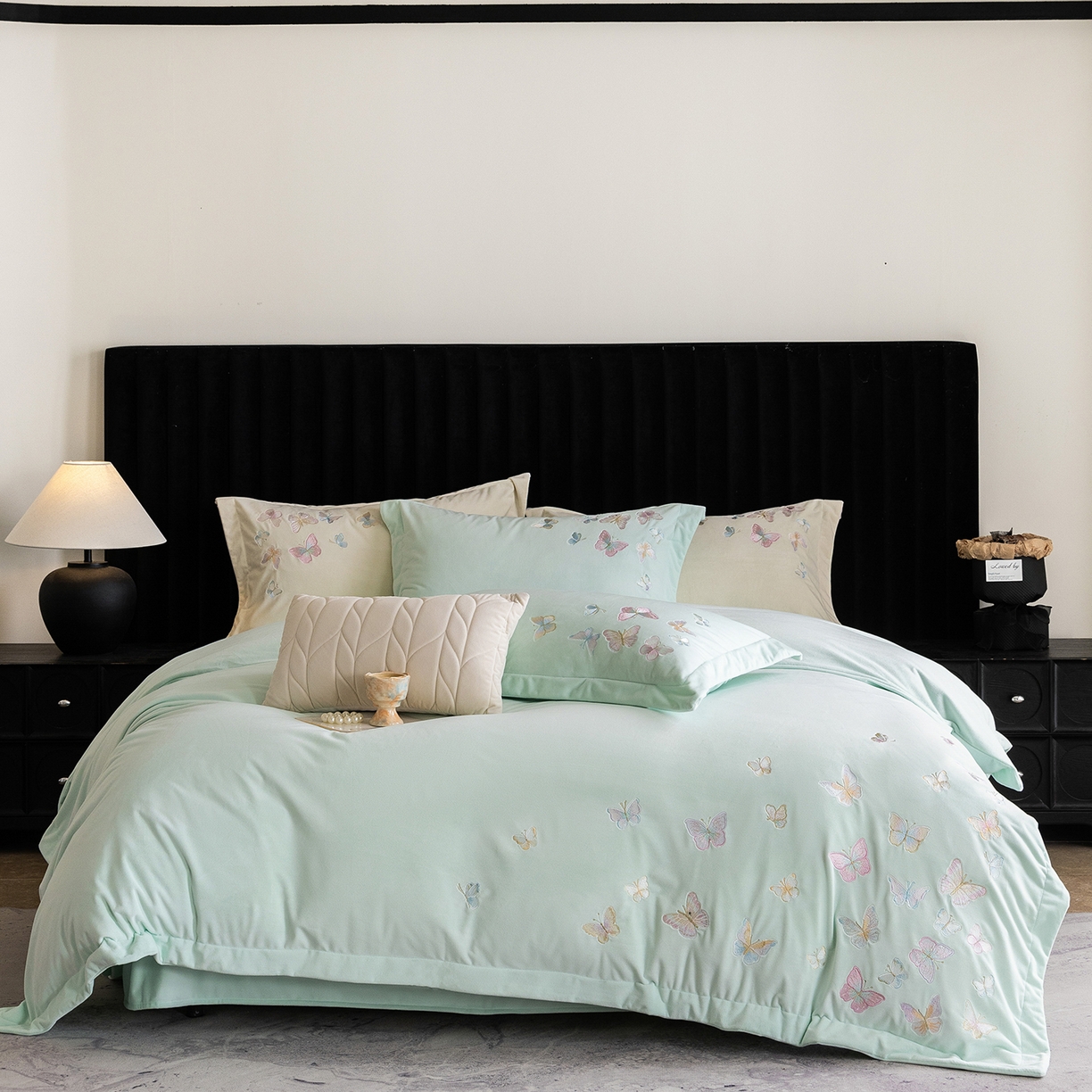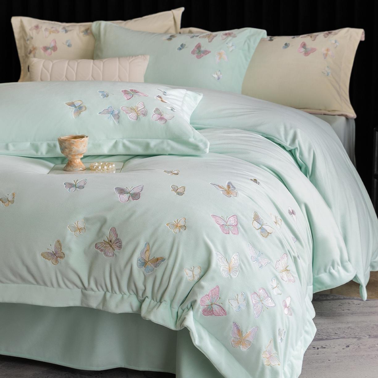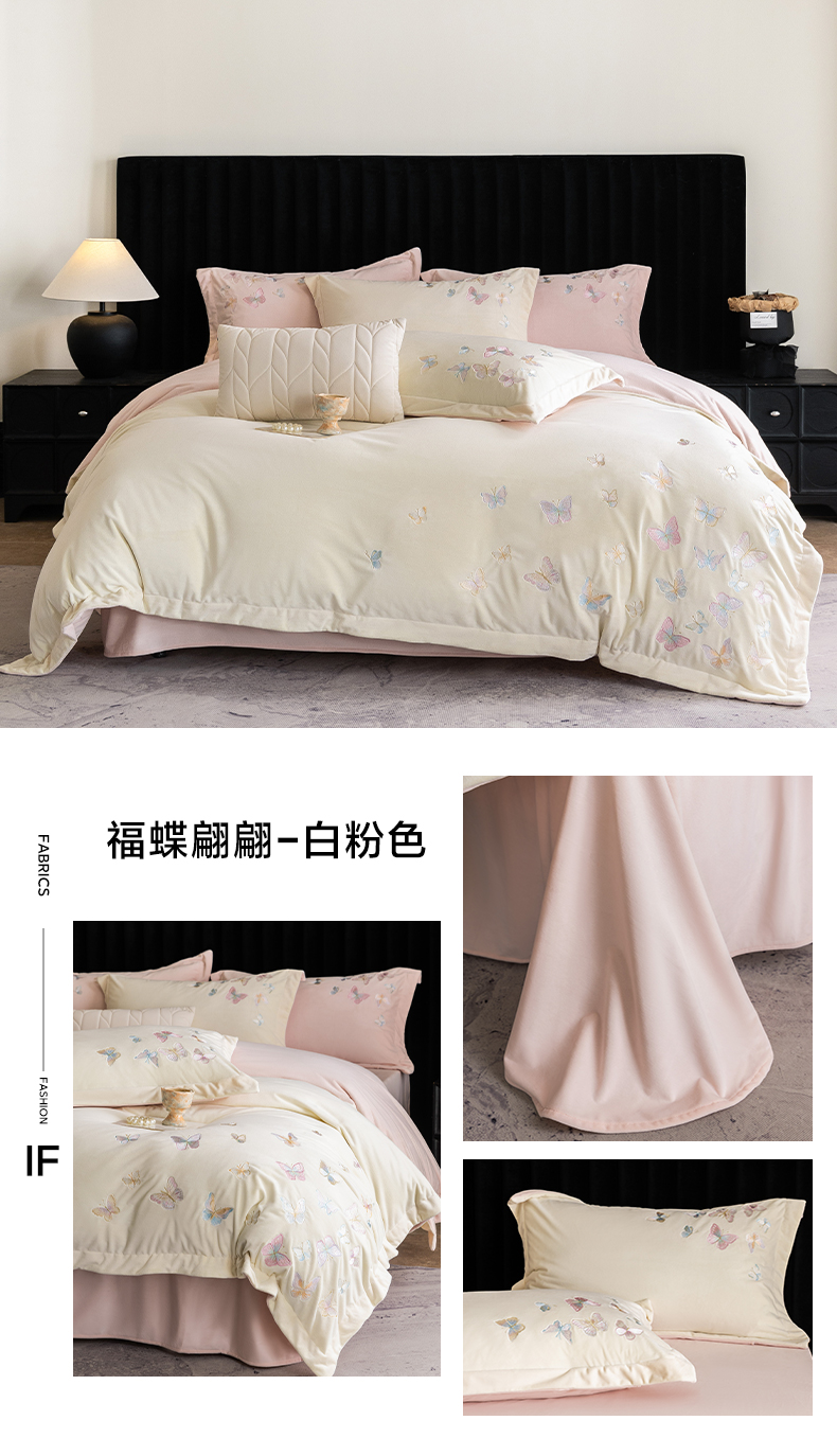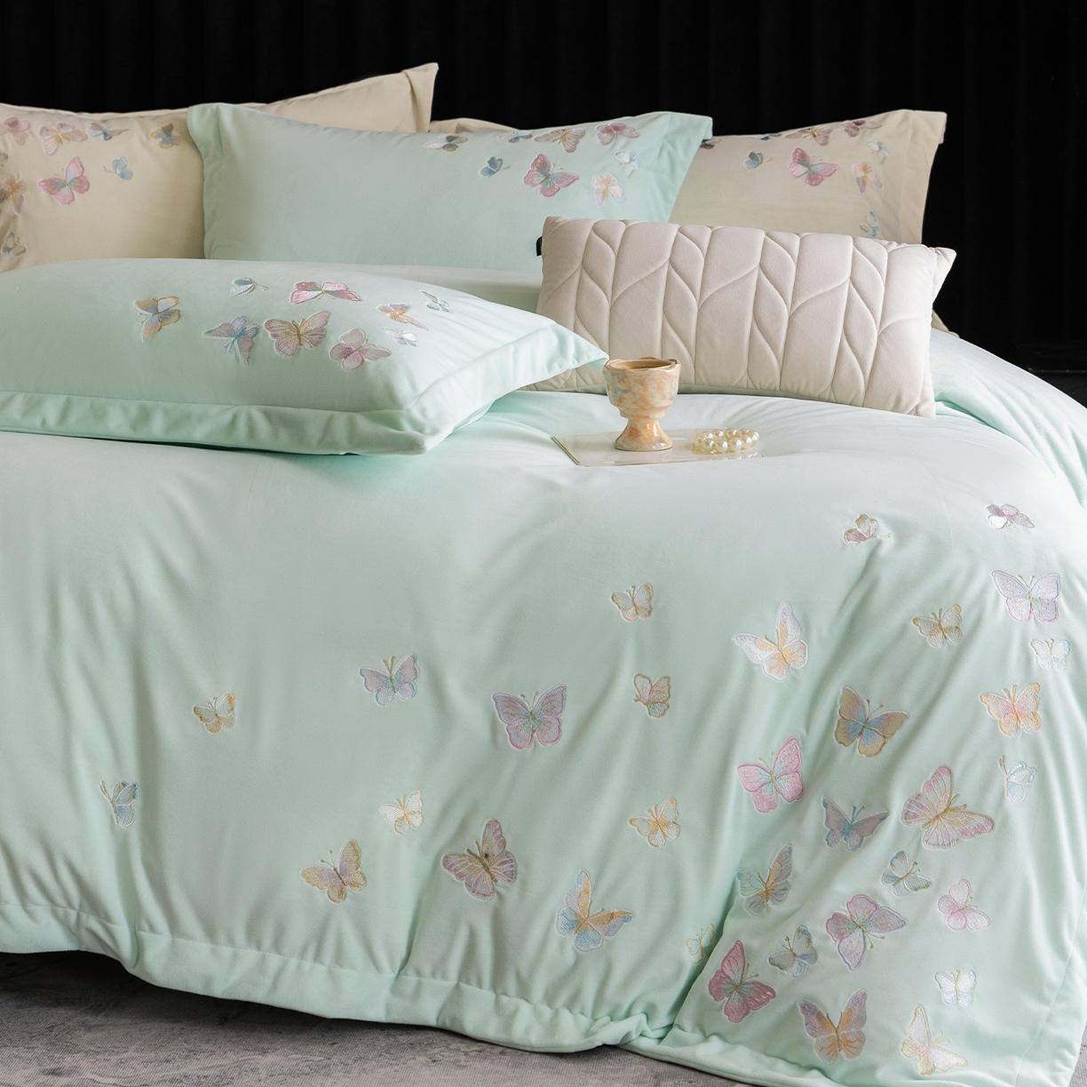 - - 2025新款A类婴儿绒宝宝绒牛奶绒纯色蝴蝶刺绣绣花四件套-福蝶翩翩