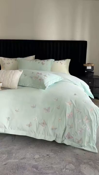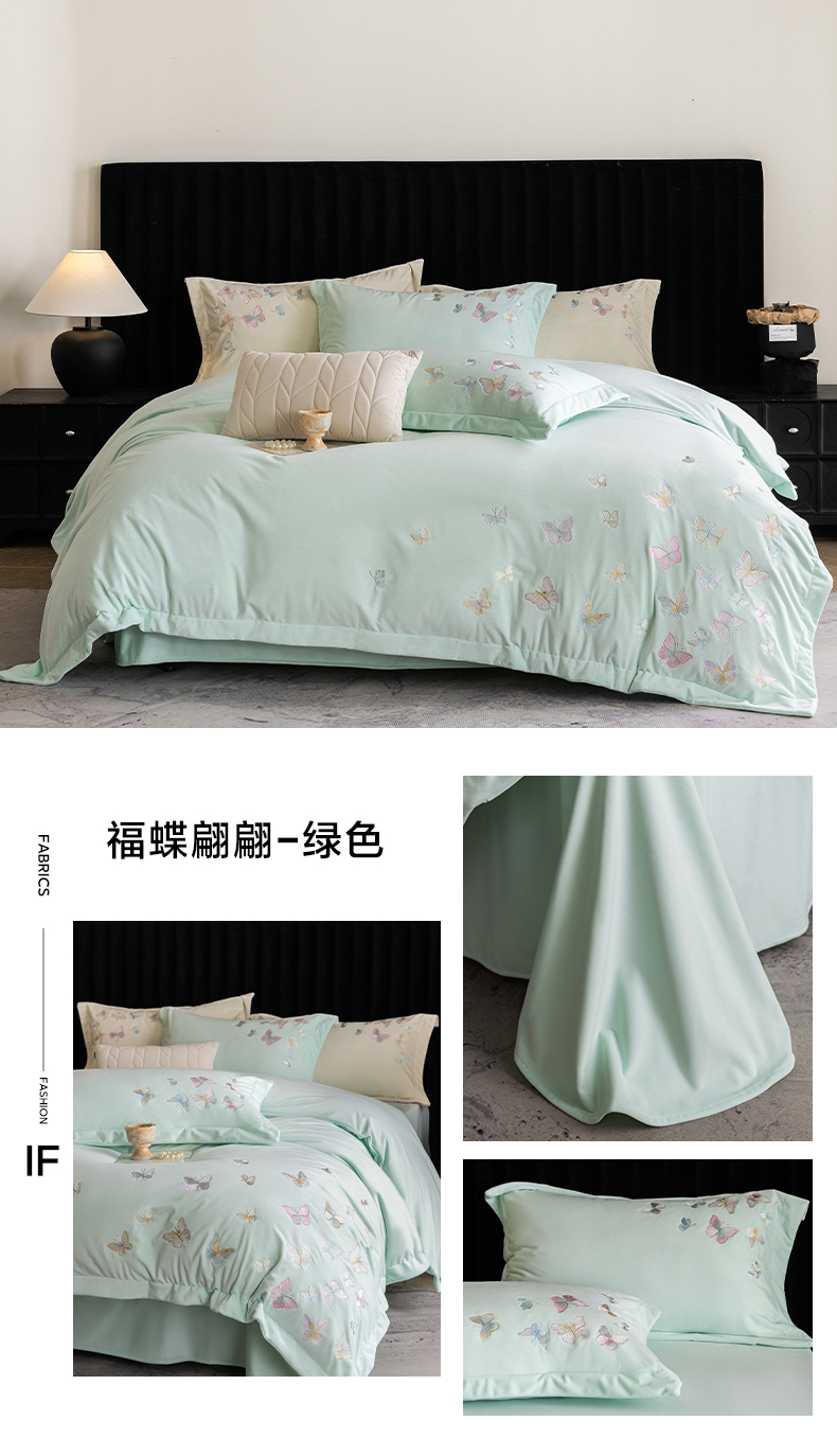 - 2024新款纯棉全棉斜纹四件套刺绣绣花款小清新三件套